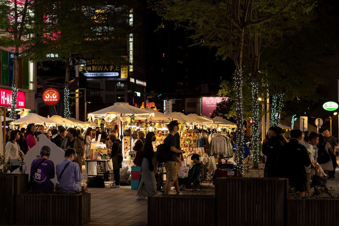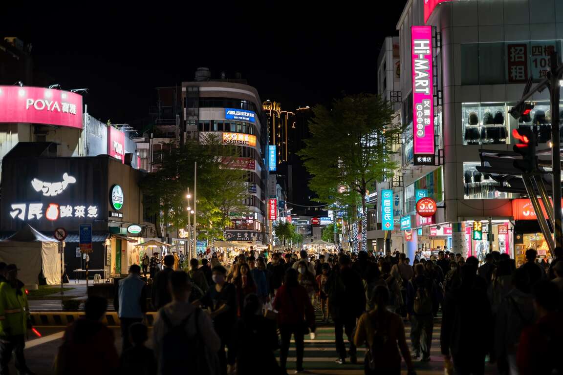 板桥後站商圈,商店小吃林立,无论日夜皆有人潮