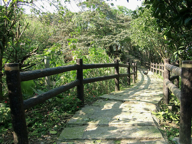 - 6茶山地区支线位於新北市石門區的草里里,步道沿途舖設透水石磚,兩旁種植有茶花約300餘株,並立有解說圖牌供民眾參閱,此步道雖稍有坡度但步行尚算輕鬆,同時步道途中還有幾處觀景平台提供遊憩休息的空間。