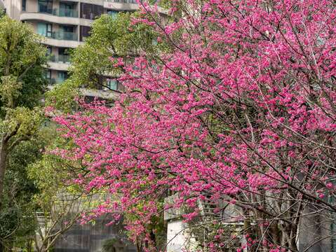 午後来到康诰坑溪流域,这条基隆河的支流,发源於汐止四分尾山,沿途流经科技公司林立的市区,溪畔种植超过两百株樱花,搭配平整舒适的步道,是汐止散步赏花的最佳去处。