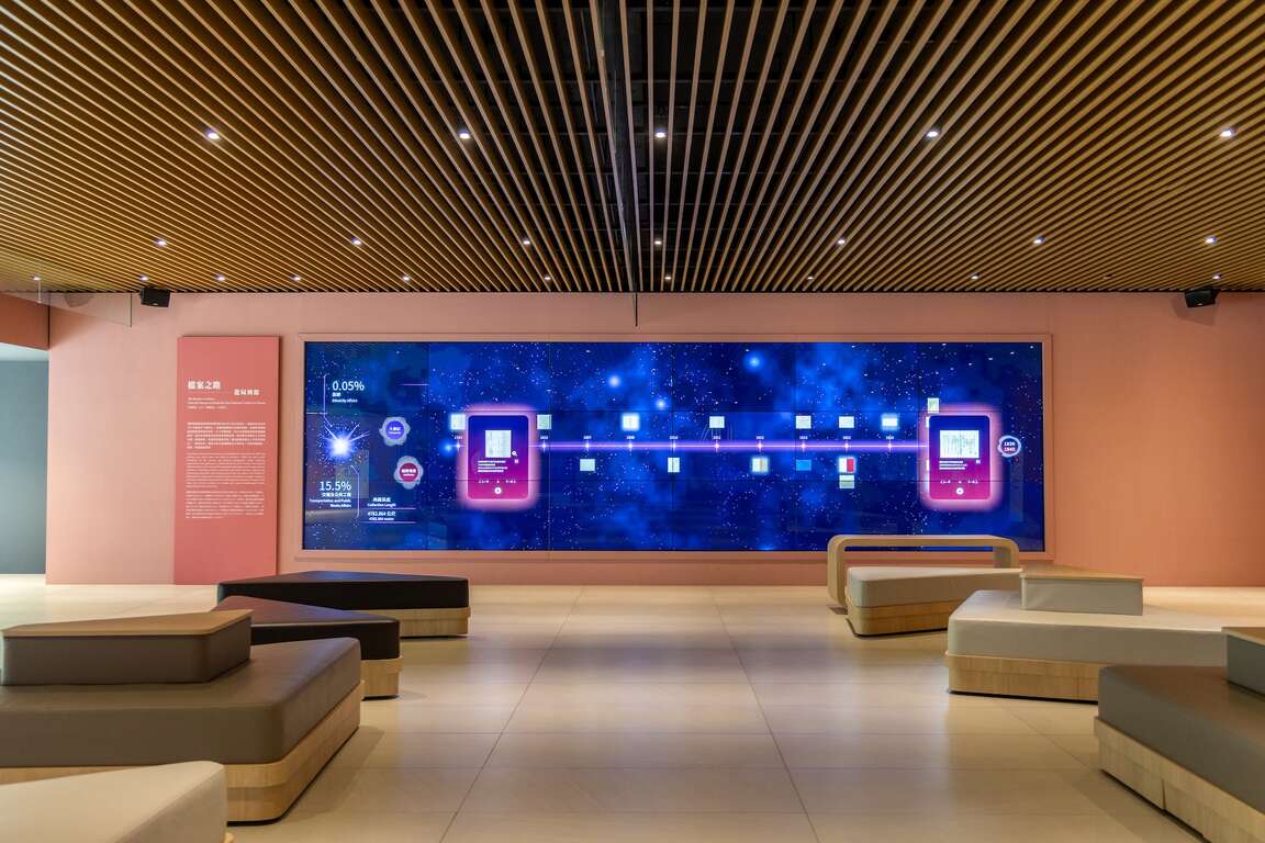 國家檔案館兩大公共藝術各自詮釋歷史與環境的意象。館內作品《以史為鏡》以1,700餘片檔案銅片構築出時空球體,包覆著樓梯,彷彿走入歷史漩流。戶外林梢廣場的《以霧為景》,以不鏽鋼網狀結構呈現林口多霧的自然特色,霧氣般的光影流動其間,是檔案館必拍的兩大亮點。檔案館建築本體使用深淺不同的紅色烤漆玻璃,由下而上淺層,呼應林口臺地的層層疊疊的紅土,也象徵著館內歲月積累的檔案卷宗。
