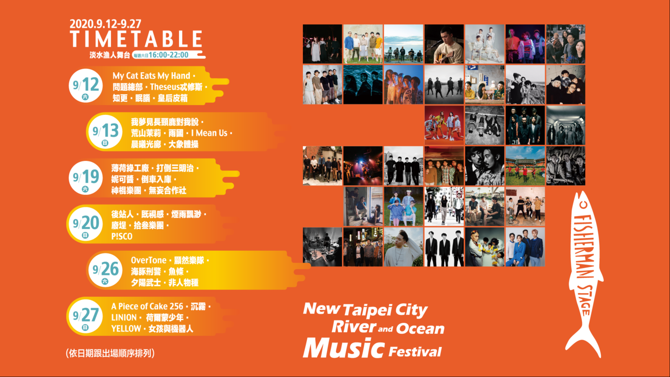 全台灣第一場最大戶外大型演唱會2020新北市河海音樂季正式起跑!本次活動分成兩大活動,首波「淡水漁人舞台」將於9/12~9/27每週六日在淡水漁人碼頭觀海廣場開唱;第二波「來新北 音樂盒‧野餐」將在10/4(週日)首度於新北大都會公園登場,這絕對是一場民眾好聽、好看又好玩的戶外音樂饗宴。