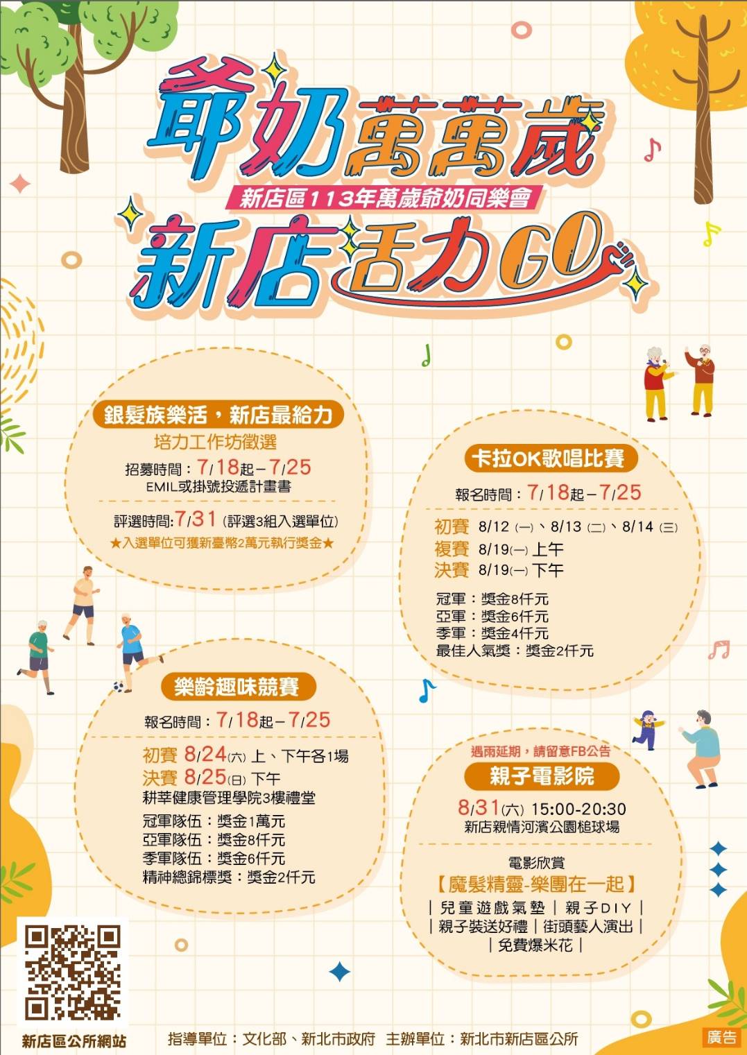 參賽者須設籍新北市新店區且年滿65歲以上(民國48年7月31日前出生)且須由單位推薦報名,每個單位推薦名額以2位為限。