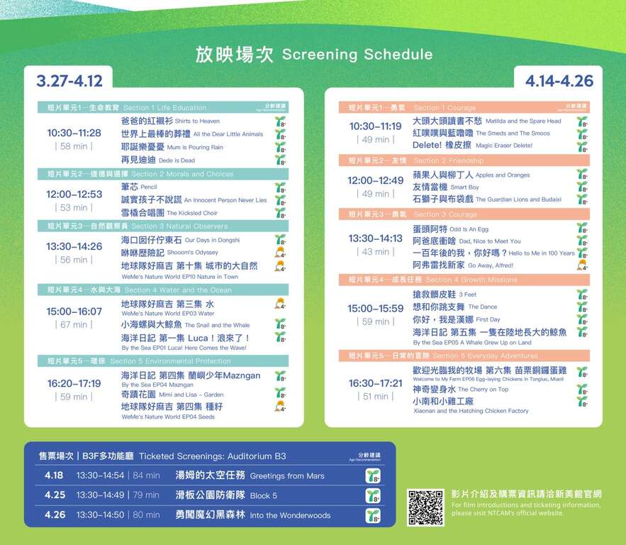 「新美Fun映」為新北市美術館探索基地首次推出的影展活動,攜手公共電視主辦之「台灣國際兒童影展」共同策劃,並於3月27日同步開展。為了體現新美館鼓勵創作實驗、倡議永續價值的理念,並呼應新美館園區豐富的自然生態,本次影展以「環境永續、藝術文化、生命教育」為主題,規劃10個單元輪流播映。除精選歷屆「台灣國際兒童影展」的優質短片外,更納入公視長期推動的「小導演大夢想工作坊」影像教育計畫成果。該計畫鼓勵兒童提出拍片構想,並由專業團隊輔導完成製作,讓孩子在創作中實踐想像、表達觀點。
