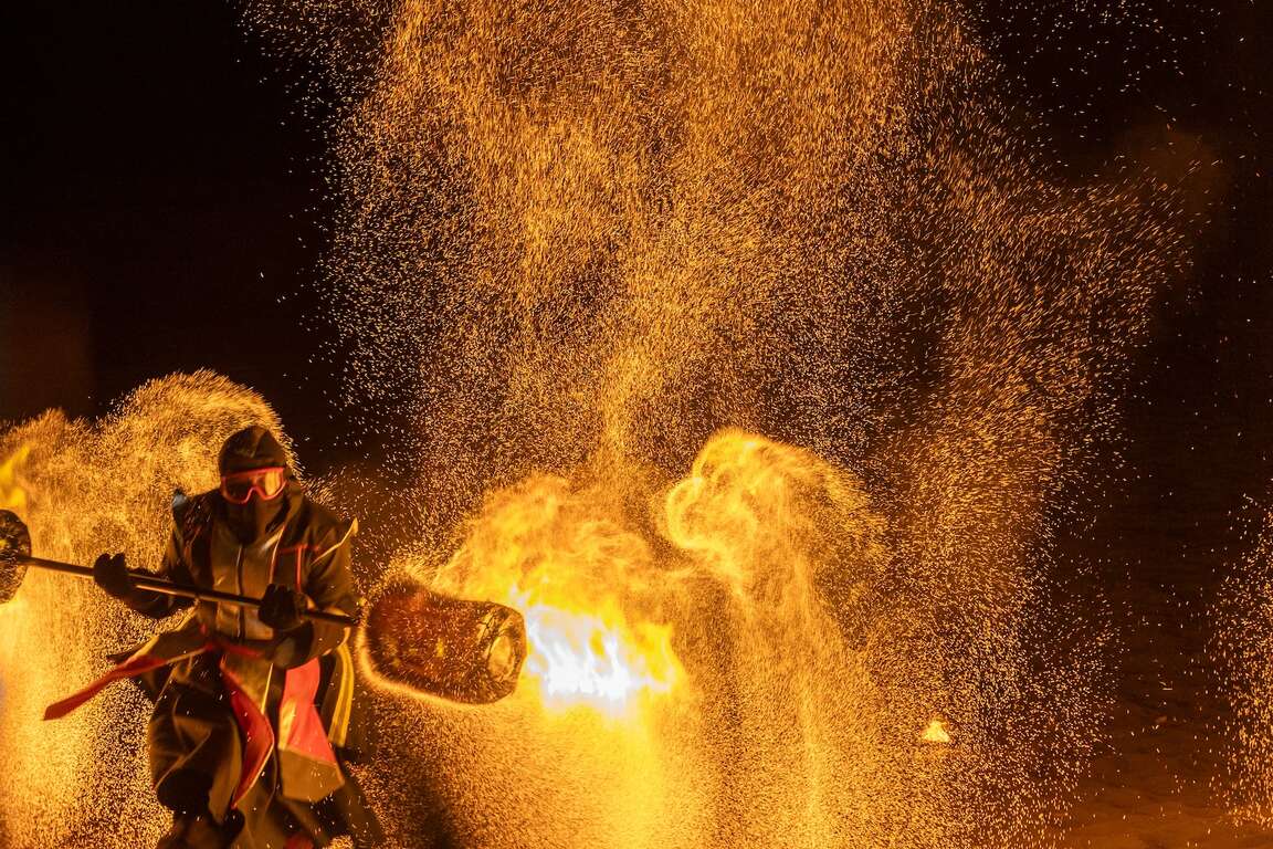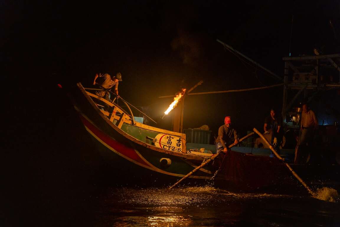 「蹦!」黑夜的海面被一瞬點亮,站在船頭的火長點燃火炬,趨光的魚群躍出水面,如同海上螢火蟲翩翩飛舞。金山蹦火仔,又稱桸仔船,是金山百年傳統漁法,如今轉為觀光體驗活動。每年5至9月,遊客可搭乘遊艇自磺港出海,近距離欣賞蹦火仔奇景,沿途遊覽金山岬、燭臺雙嶼,感受夜海獨有的神秘魅力。
