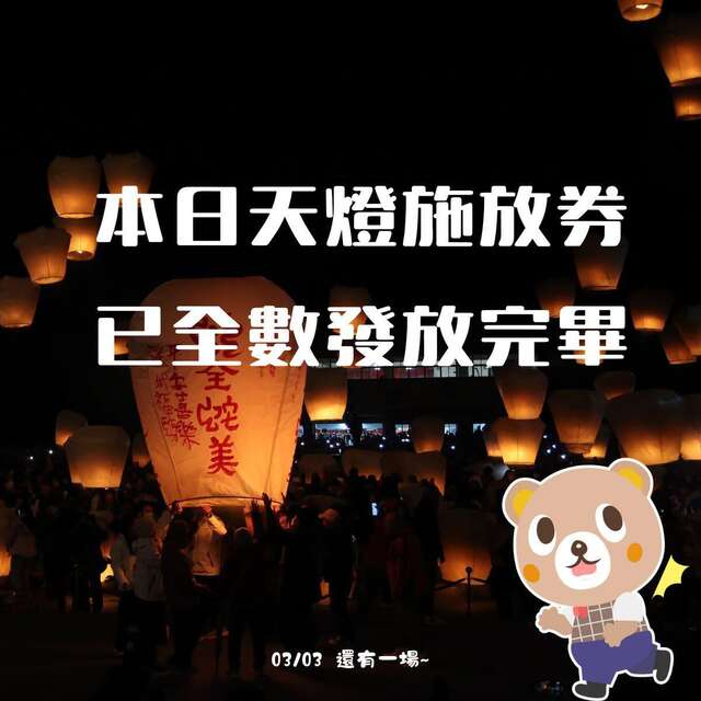🐻小客大聲公🐻 📣注意注意📣 2026新北市平溪天燈節02/27平溪場✨ 天燈施放券 已全數發派完畢!2026-02-27