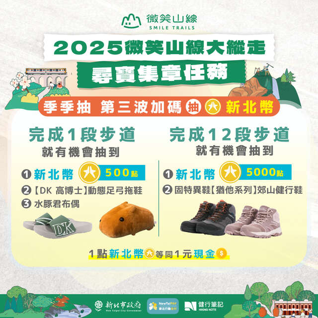 【 📍新北玩哪裡】 #限時限量 錯過不再! #微笑山線尋寶集章任務持續升溫🔥 已有近1,500位山友成功完登,這是本活動最後一波抽獎,走過路過千萬別錯過!還不趕快換你上場!!2026-02-15