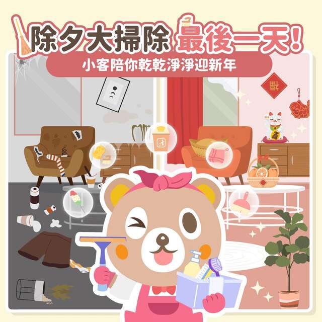 今天除夕囉~要圍爐,也別忘了打掃🧹 新年大掃除最後一天,再檢查看看有沒有漏掉的角落👀2026-02-16
