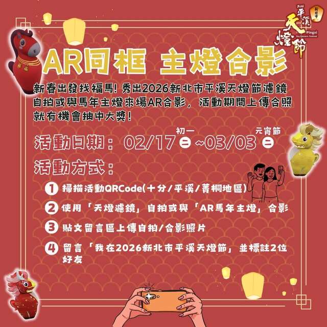 【🧡新北市平溪天燈節】#天燈祈福第二重抽獎 來啦! 新年走春就到十分平溪菁桐找AR馬年主燈💕🐴 開啟濾鏡打卡📸多項好禮等你帶回家🎁2026-02-17
