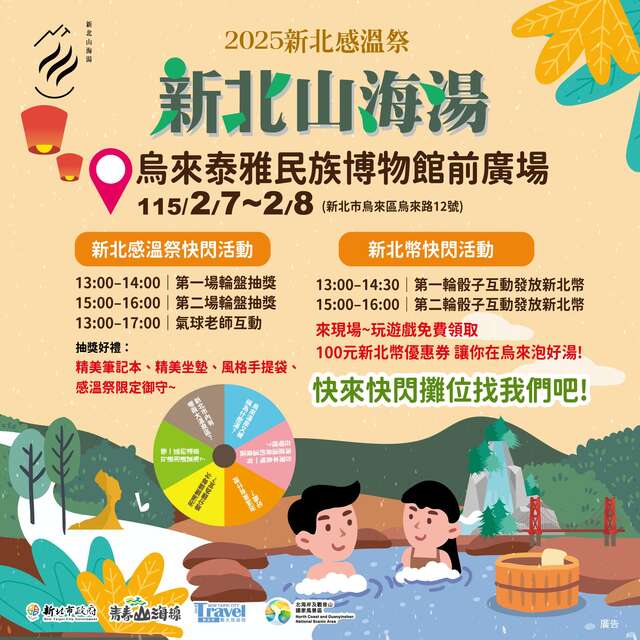 【📍新北玩哪裡】#新北感溫祭快閃烏來♨️✨ 咻咻!大家最喜歡的快閃活動又來啦! ♨️週末就衝烏來玩互動遊戲、拿好禮、領新北幣2026-02-05