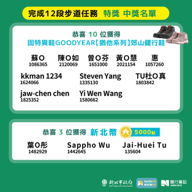 【📍新北玩哪裡】 #2025微笑山線大縱走尋寶集章任務 💎 🎉第二波抽獎名單出爐啦🎉 快來看看這一波的幸運山友是誰吧~2026-02-07