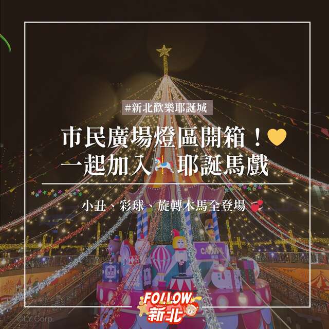 【🎪2025新北歡樂耶誕城】 #市民廣場燈區介紹來了! 今年耶誕城變身 #星空馬戲園區🎠 快跟著一起開啟最夢幻的耶誕派對吧🎄2025-11-18