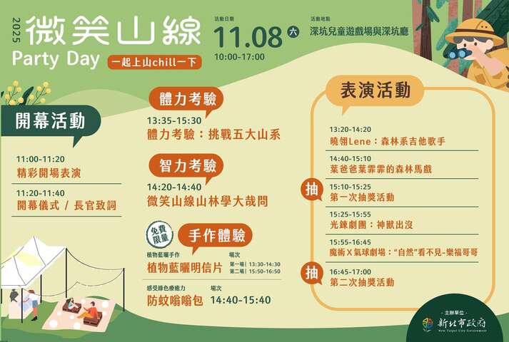 【📍新北玩哪裡】 #微笑山線PartyDay 來啦! 🎉 這次~我們不登頂🌿來Chill一整天 🌞 帶著微笑出發,來 #山邊開趴吧 !2025-10-24