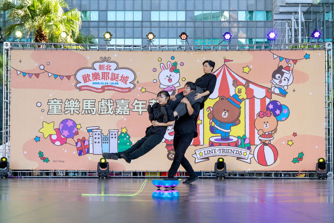 【新北市訊】「2025新北歡樂耶誕城」昨(14)日在奇幻馬戲大秀的加持下熱鬧開城!首週末隨即由「童樂馬戲嘉年華」接力登場,持續點燃節慶歡樂氛圍。今(15)日「童樂馬戲嘉年華」舞臺活動自13時起熱力開演至20時30分,兒童音樂劇、泡泡秀、魔術、雜耍特技及卡通家族帶動跳等精彩節目輪番登場,吸引大批親子共襄盛舉,現場笑聲與掌聲不斷,歡樂氣息一波波推向高潮。
