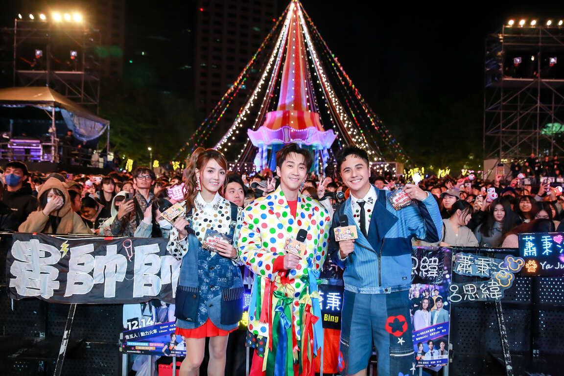 【新北市訊】2025新北歡樂耶誕城「巨星耶誕演唱會-The Greatest Show」昨(13)晚熱鬧開唱,今(14)日華麗卡司接力引爆新北市市民廣場,9組人氣歌手吸引大批歌迷到場朝聖,包含告五人、王ADEN、GX 鼓鼓呂思緯 蕭秉治、HUR+、J.Sheon、婁峻碩SHOU、高爾宣OSN、熊仔及動力火車,連番精彩演出讓現場尖叫聲不斷,巨星耶誕演唱會氣氛持續狂熱到最高點!「黃金主持鐵三角」曾子余、陳漢典及朵拉 謝雨芝以機智又幽默的串場全程炒熱現場氣氛,陪伴觀眾度過最歡樂、最HIGH的週末夜晚!