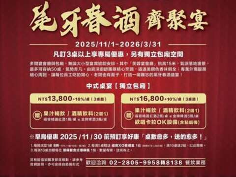 🧧尾牙春酒旺年宴🧧🎉 2025尾牙春酒首選 — 淡水福容大飯店🎉歲末饗宴,精彩上桌,感謝同仁辛勞一整年!👨🍳 由五星主廚領軍頂尖廚藝團隊親自操刀,融合中式經典美饌,道道精緻出色!💼專業外場服務團隊貼心安排每個環節,為您呈現一場難忘又充滿溫度的年終盛會!※11/30前預訂「桌數越多,送得越多!」預訂三桌以上享有專屬優惠,再加碼獨立包廂,敬邀共度難忘時刻!★ |活動詳情|https://reurl.cc/Nxnekx★ |預訂請洽|02-2805-9958轉8138