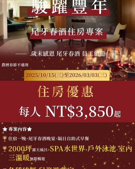 ✨ 住宿一晚 + 尾牙春酒晚宴 + 隔日自助式早餐