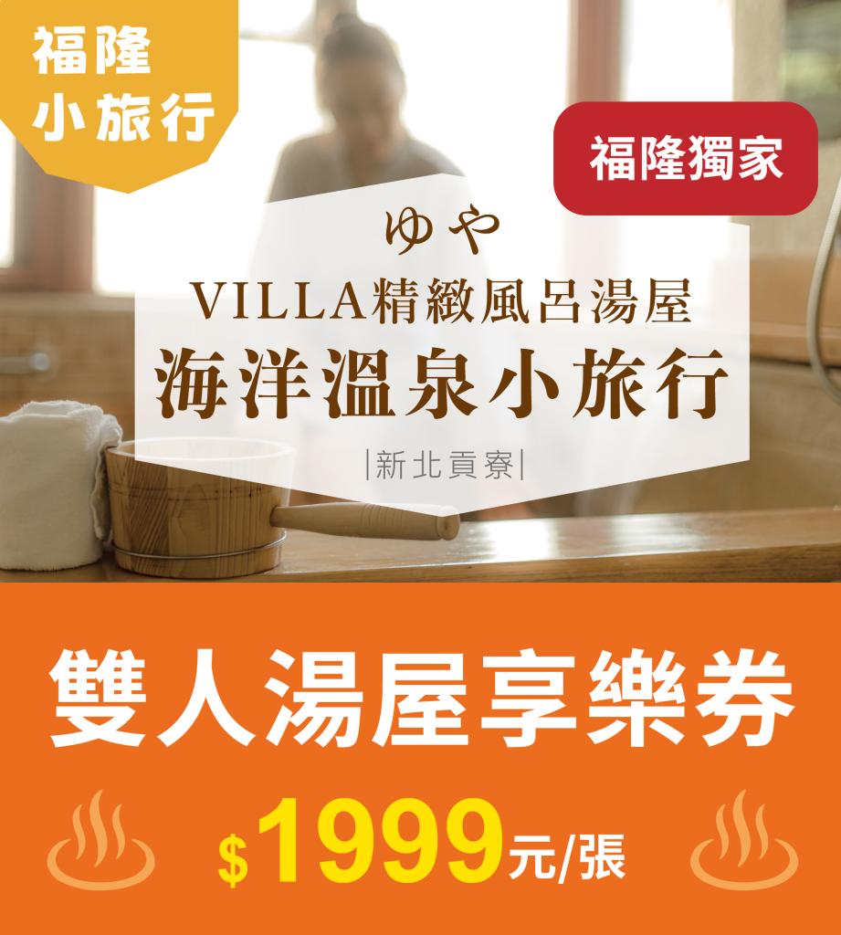 福容大飯店福隆擁有「海洋深層溫泉」,全台唯一氯化物氫鹽泉,被綠蔭樹林圍繞的VILLA風呂湯屋,搭配木質溫泉池,浸潤在溫泉中,不僅暖身更暖心,溫泉採自枋腳斷層地底下1500公尺,溫泉外觀呈現淡琥珀色,浸泡後在皮膚形成薄膜,有助於皮膚保溼度,鹽分附著在皮膚表面,不易冷卻的特點,可防止汗水蒸發,讓您在海浪聲和綠蔭環繞下享受最隱密、愜意的泡湯時光!