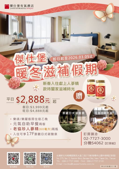 🏨 官網詳情: https://jasperhotelbanqiao.com.tw/