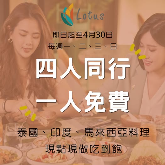 🎉 優惠內容|四人同行,一人免費(以價低者折抵,另加原價10%服務費)